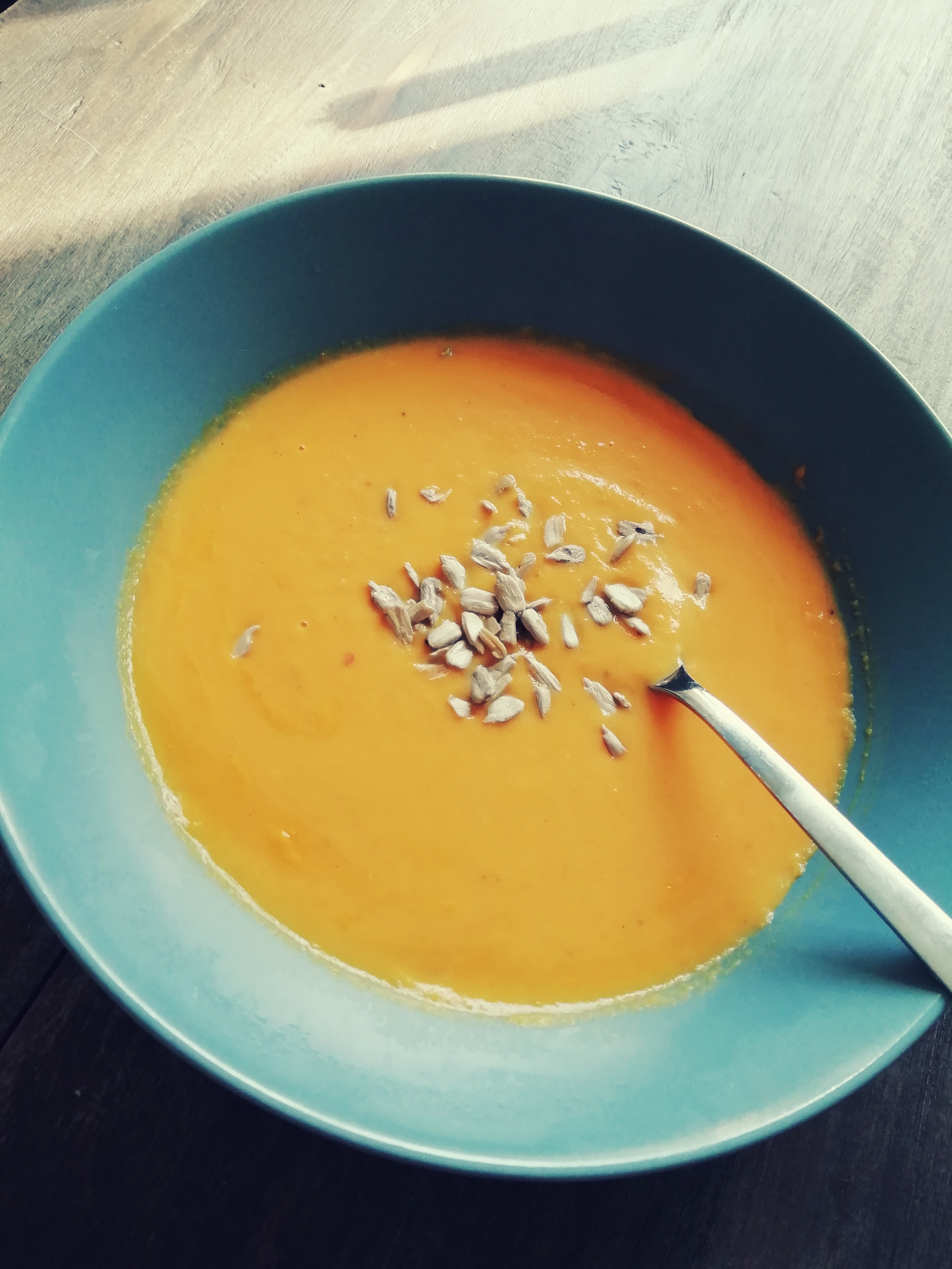 - Soseuta keitto tehosekoittimella. Lisää koskenlaskija ja maito. Mausta. Tarjoile kurpitsansiementen kera.