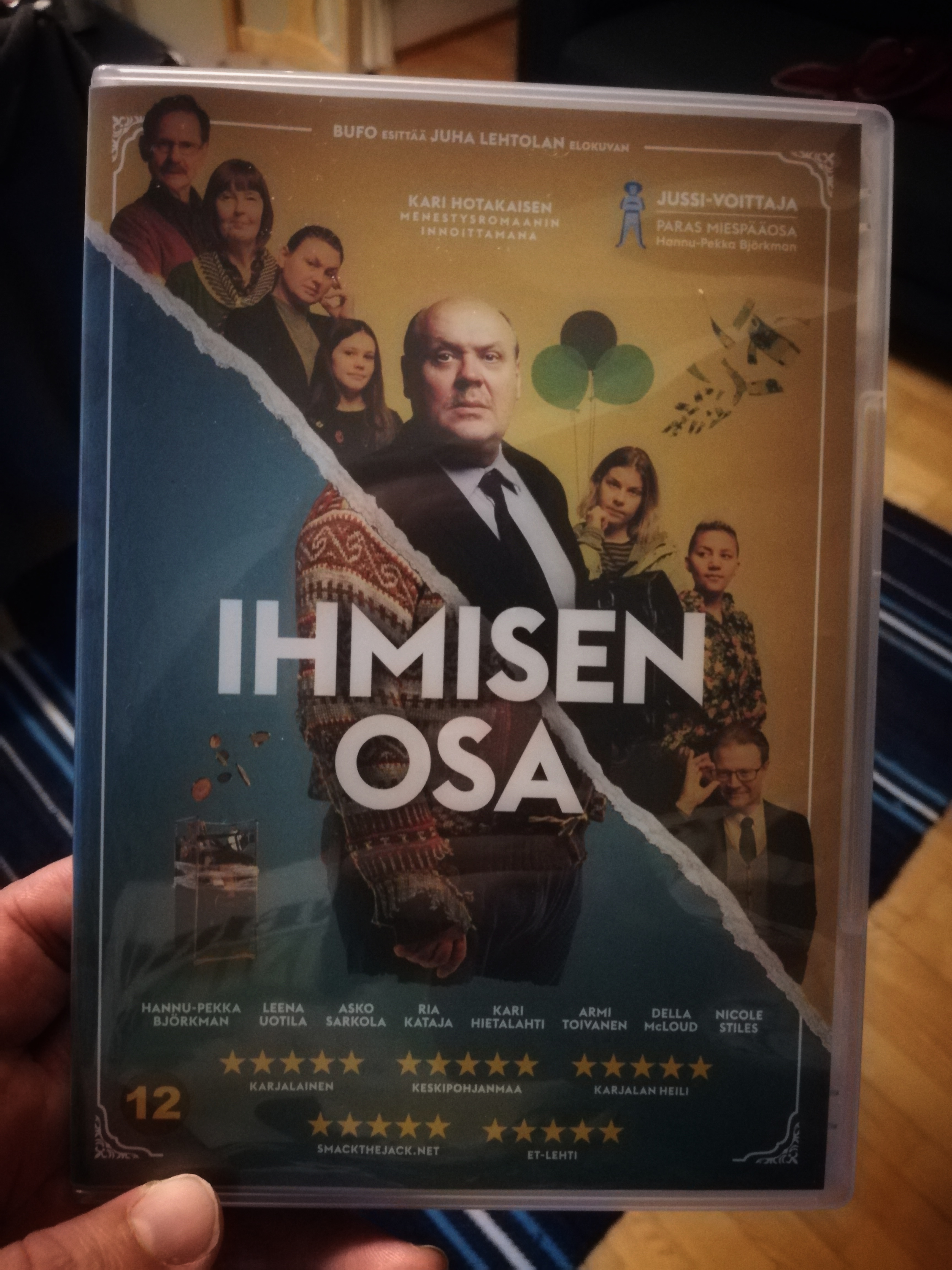 Joulukuun lopulla painin itseni kanssa ja mietiskelin, että käynkö leffassa katsomassa Juicen vai Ihmisen osan? Silloin päädyin Juiceen ja nyt katsoin kotisohvalta Ihmisen osan. Voin sanoa, että tein joulukuussa ihan oikean päätöksen. Ihmisen osa on siis Juha Lehtolan ohjaama, 2018 joulukuussa ensi-iltansa saanut, kotimainen elokuva, joka perustuu Kari Hotakaisen samannimiseen romaaniin. Elokuva sai 5 Jussiehdokkuutta mm. Paras elokuva.