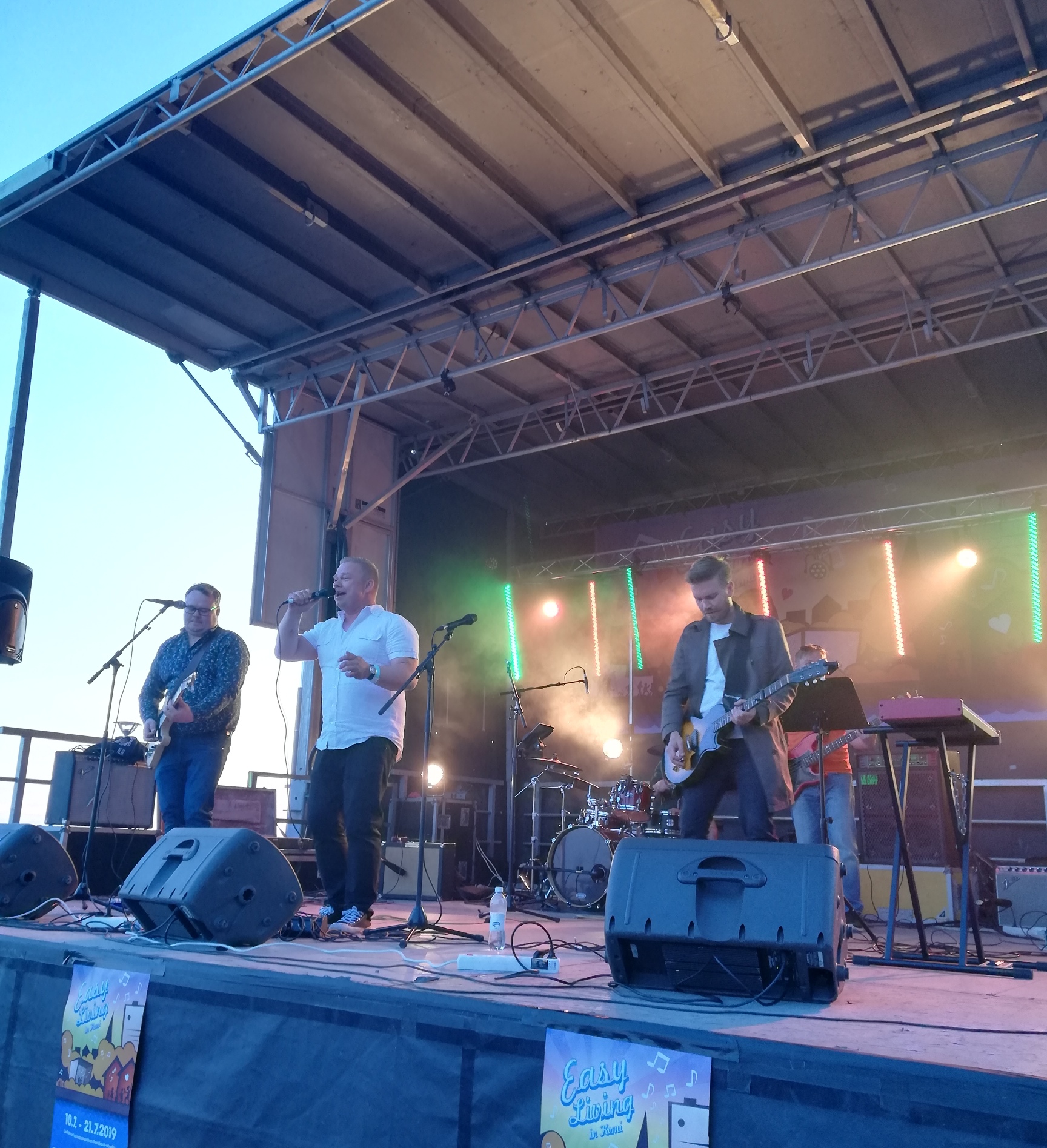 Sisäsatamaan saapuessamme Fresh X aloitteli Rantamakasiini-lavalla oikein menevää rock-cover settiään. Rantamakasiinin lava oli kuitenkin niin pieni ettei sen läheisyyteen mahtunut kuuntelemaan, joten oli parempi antaa bändin soida taustalla ja alkaa katsomaan, että ketäs muita olikaan ilmestynyt paikalle Kemin aurinkoiseen iltaan. Ilokseni sainkin huomata, että Kemin jet set -piireistä ja muista silmää tekevistä lähes kaikki olivat paikalla. Oli äärimmäisen mukava jututtaa pitkin iltaa Kemiläisiä muusikoita, entisiä jalkapalloilijoita sekä muita vanhoja kavereita kuten erästä radio- ja tv-persoonaa. Siinä rupatellessa ilta eteni pisteeseen jolloin Show fine aloitti oman settinsä Katariinan teranssilla. Sitä oli tarkoitus kuunnella ihan ajatuksenkin kanssa. Soittihan eräs kaverini siinä aikoinaan vaikkei nyt kokoonpanossa ollutkaan, mutta tuttujen ihmisten tulvaa ei voinut väistää ja olihan se mukavaa nähdä ja vaihtaa kuulumisia, varsinkin kun monia niin harvoin näkee. Jutustelun lomassa sain kuitenkin sen verran otetta Show fine –orkesterista, että hyvin ne veti settinsä.
