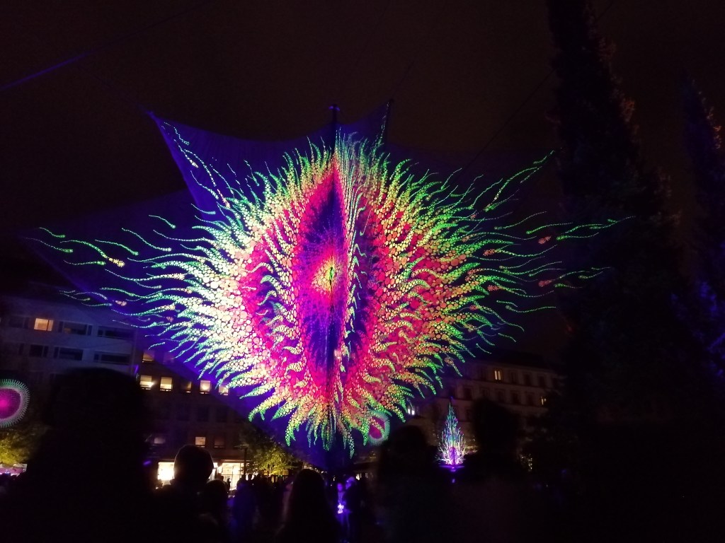 Mutta asiaan. Koska mä tarviin nyt aina jonkun työntää mun tuolia (en jaksais joka päivä tuolla liftata), niin varma keino löytää sellainen, on ruoka! Tie työntäjän sydämeen käy siis vatsan kautta. Eilen sain houkuteltua isäni vaimoineen mulle työntöavuksi, jotta pääsin tsekkaa ”Valon kaupunki”-tapahtuman.