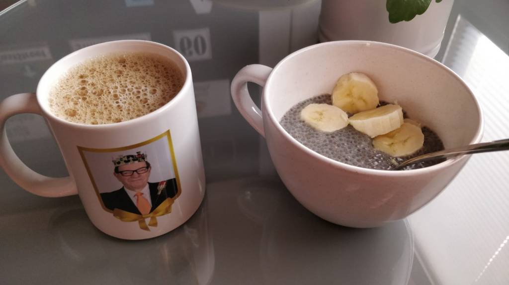 Toinen kokeilu chia-tuorepuuron kanssa. Tällä kertaa en sotkenut sekaan mitään ylimääräistä ja koristelin sammakonkudun banaaneilla. 14 tunnin tekeytymisen jäljiltä koostumus oli tällä kertaa yhtenäisempi, semmoinen geelimäinen. Maku hieman erikoinen, syötävää muttei mitään herkkua. Kokeilut tämän puuron kanssa taitavat jäädä tähän, käsittämätöntä että puuron valmistukseen pitää varata vuorokausi aikaa, kun on olemassa puuroja jotka saa vedenkeittimen avulla valmistettua minuuteissa. Ja maistuvatkin paremmalta.