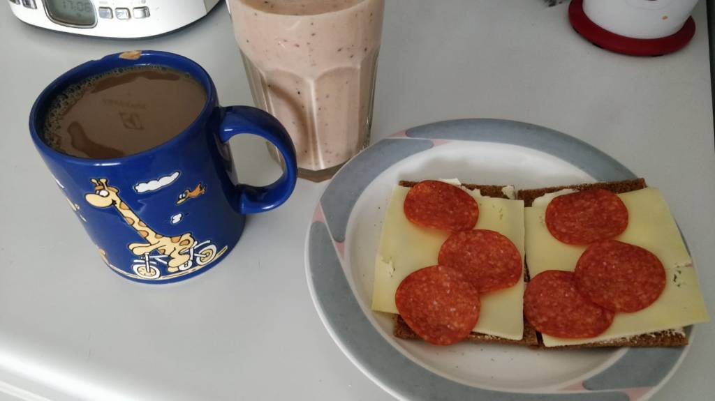 Aamupalaksi hapankorppua ja smoothie. Oikein hyvä.