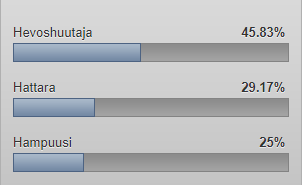 Edellisen kerran äänestystulos on aiheuttanut puhetta ja parranpärinää ympäri internetiä, ja kieltämättä tässä on itse kullakin käynyt mielessä että onko Satunnaistoiston it-osastolla mokattu pahemman kerran. Seuraavan äänestyksen toteutus päädyttiinkin tilaamaan Tiedolta, kallishan se oli, mutta ihmisillä on oikeus rehelliseen äänestykseen. Seuraavassa yleisön äänet edelliseltä kerralta: