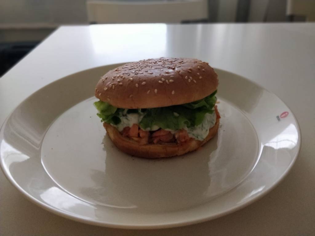Burgeri oli oikeastaan erittäin hyvän ja raikkaan makuinen, tosin kalan maku siinä jäi hieman paitsioon. Tarjoilin näitä seuraavana päivänä töissä kahdelle työkaverille, joista toinen sanoi että hyvää on. Toinen haarukoi ruokailun jälkeen jotain lautaseltaan roskikseen, kuulemma vain salaatinlehteä meni roskiin. Vaikenin hyväksyvästi.