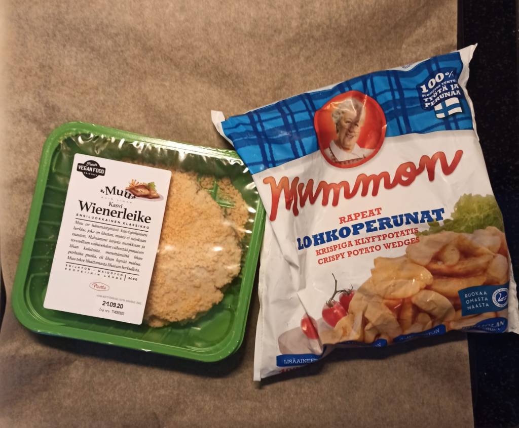 Mennäämpä kuitenkin alkuun. Olin saanut kuulla positiivisia huhuja tästä Muun Wienerleikkeestä ja kun Hevoshuutajakin oli kehunut, niin pitihän se testata. Ei ollut vaihtoehtoja ja jos Avokadopasta oli helppo, niin tämän tekeminen oli helppoa kuin lapsen vieminen tikkarilta. Lohkopotut uuniin, vähän öljyä pannulle, pyöritellä pihviä siinä kymmenisen minuuttia ja kun kaikki on valmista, niin lautaselle. That’s it, soosit päälle. Aloitin maistelun varovasti. Olettaen, että pääsen sanomaan – ”Mitä minä sanoin”, mutta päinvastoin. Jouduinkin myöntään kuinka väärässä olinkaan ollut. Muu Wienerleike oli oikeasti hyvänmakuinen eikä rakenteessakaan ollut mitään vikaa. Homma ei sakannut edes kustannusten kohdalla, vaan lihaisat vastineet painivat samassa hintaluokassa tai itseasiassa tämä oli vähän halvempikin. Tämän kohdalla minulta itseltäni loppuu nyt tekosyyt kesken, jos pitää puolustella lihaversiota. Tätä voin suositella vilpittömästi muillekin lihansyöjille.