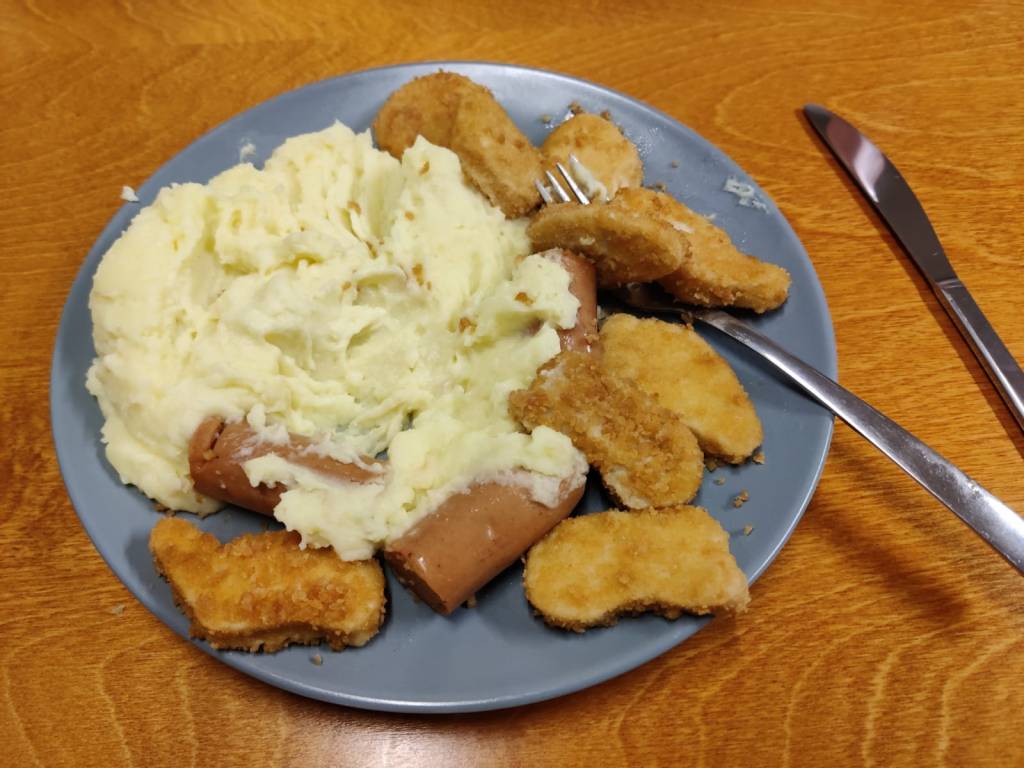 Muusia jäi joten otin sitä seuraavana päivänä töihin mukaan ja paketin kasvisnugetteja. Chorizoja oli myös jäänyt yksi ja lämmitin senkin mikrossa nugettien kanssa. Makkara ei mikrotettuna ollut juurikaan niin hyvää kuin kiukaalla tai pannulla valmistettuna, kuten ei makkara yleensäkään. Nugetit sen sijaan maistuivat käytännössä samalta kuin ne einesnugetit joita kaupasta saa noin eurolla paketti. Eipä niissäkään kyllä lihaa taida olla nimeksikään. Nugettien rakenne oli myös saatu identtiseksi esikuvansa kanssa. Sanoisin että ei ole kyllä juuri mitään väliä syökö työpaikan lounaalla näitä kasvinugetteja vai niitä halpoja kananugetteja. Poutun Muu-sarja on kyllä hämmentävän hyvin onnistunut jäljittelemään erilaisia eines- ja puolivalmisteita. Vielä voisin näistä testata ainakin burger-pihvit.