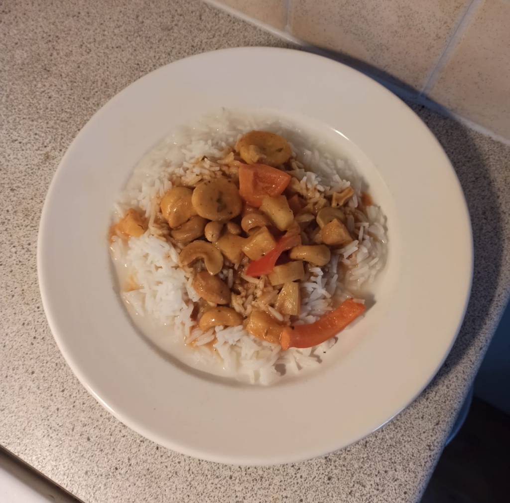 Tunsin, että näistä aineksista voisi syntyä jonkinlainen hampuusilais-aasialainen ruokainnovaatio, kun ne yhdistää kotoa löytyviin lisäainesosiin. Ei muutakuin toimeen ja kaikki kattilaan sekasin muhimaan, mausteita perään ja riisit kypsymään omaan kattilaan. Sitten vain uskoa omaan visioon ja odottelemaan Beatlesin soidessa taustalla. Jammailin ”While my guitar gently weeps” -biisiä, sillä pojat ei tanssi, paitsi silloin kun kukaan ei näe ja joskus hirveässä humalassa. Pian totesin, että riisit ovat kypsiä ja ruoka valmista. Maku oli oikein hyvä ja kun tuunaan ensviikolla ylijääneen kastikkeen kanalla, niin se on ylivoimainen. Joten jälleen oli aihetta taputella itseään selkään onnistuneen suorituksen merkiksi.