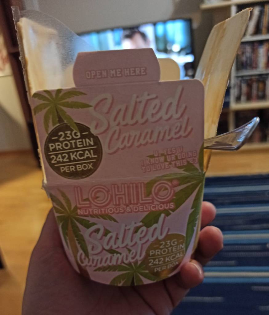 Jälkiruokana oli Lohilon Salted caramel, eli kinuski tai suolainen kompiainen, jäätelö. Eräs lukijamme suositteli testaamaan tätä ja mehän kuuntelemme lukijoitamme. Olen yleensä vähän skeptinen näiden terveellisempien herkkujen suhteen ja kun huomasin miten ulkokuori vouhotti proteiinin määrällään, niin mieleen tulikin proteiinipatukat, jotka on mielestäni vaan tapa saada nekin syömään suklaata, jotka ei muuten syö. Nyt siis ajattelin, että tällä houkutellaan syömään jäätelöä ne, jotka ei syö Ben & Jerryä. Ennakkoluulot edellä siis mentiin hyvin vahvasti, mutta tämä oli yllättävän hyvää. Peittosi monet kilpailijansa, mutta toisaalta jää silti kauas markkinajohtajista. Esimerkiksi Ben & Jerrys tuoteperheen jäätelöt kivipesee ja linkoaa Lohilon mennen tullen ja palatessa. Siis maultaan. Terveellisyydessä varmaan päin vastoin. Hyvää kuitenkin oli.
