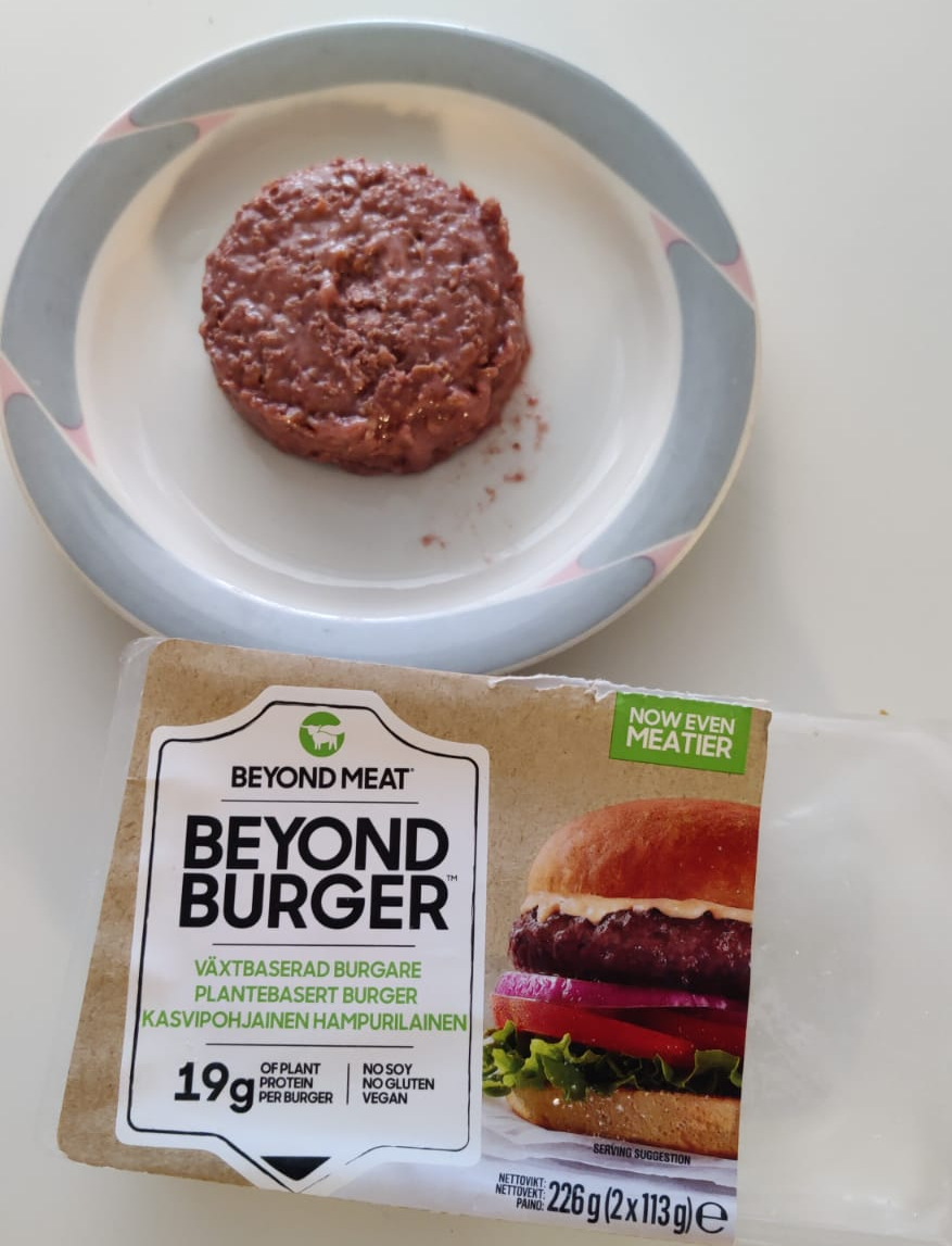 Viimeistä päivää viedään ja olen viikon aikana testannut mielestäni kaikki oleelliset lihankorvikkeet. Soijarouhe ja tofu eivät tällä viikolla keittiööni eksyneet, mutta olen niitä kokeillut jo aiemmin kun elin viikon Neiti Hattaran ruokavaliolla. Eivätkä ne oikein silloin vakuuttaneet. Yksi on kuitenkin vielä kokeilematta, nimittäin vöner. Olisin halunnut sunnuntain kunniaksi tilata vönerin valmiina ravintolasta, mutta eihän täällä kylällä ole kuin yksi paikka josta sitä saa, ja heillä ei jostain syystä ole kotiinkuljetusta. Joten oli tyydyttävä kaupan vöneriin. Muistatteko kuinka perseilin eräänä päivänä ja söin vahingossa kinkkujuustocroissantin? Lupasin silloin keksiä itselleni jonkun rangaistuksen. Olin aiemmin viikolla aikeissa ostaa beyond meatin burgerpihvejä, mutta niillä oli hintaa 8,69€ / 2kpl, joten hyllyyn jäi. Ymmärtäisin hinnan siinä tapauksessa että pihvit olisi tehty vaikkapa saimaannorpasta. Mutta että kasvispihvistä yli neljä euroa kappale, ei kiitos. Paitsi että kyllä kiitos, sillä ostin niitä pihvejä nyt sitten kuitenkin, mielestäni enemmän kuin riittävä rangaistus virheestäni.