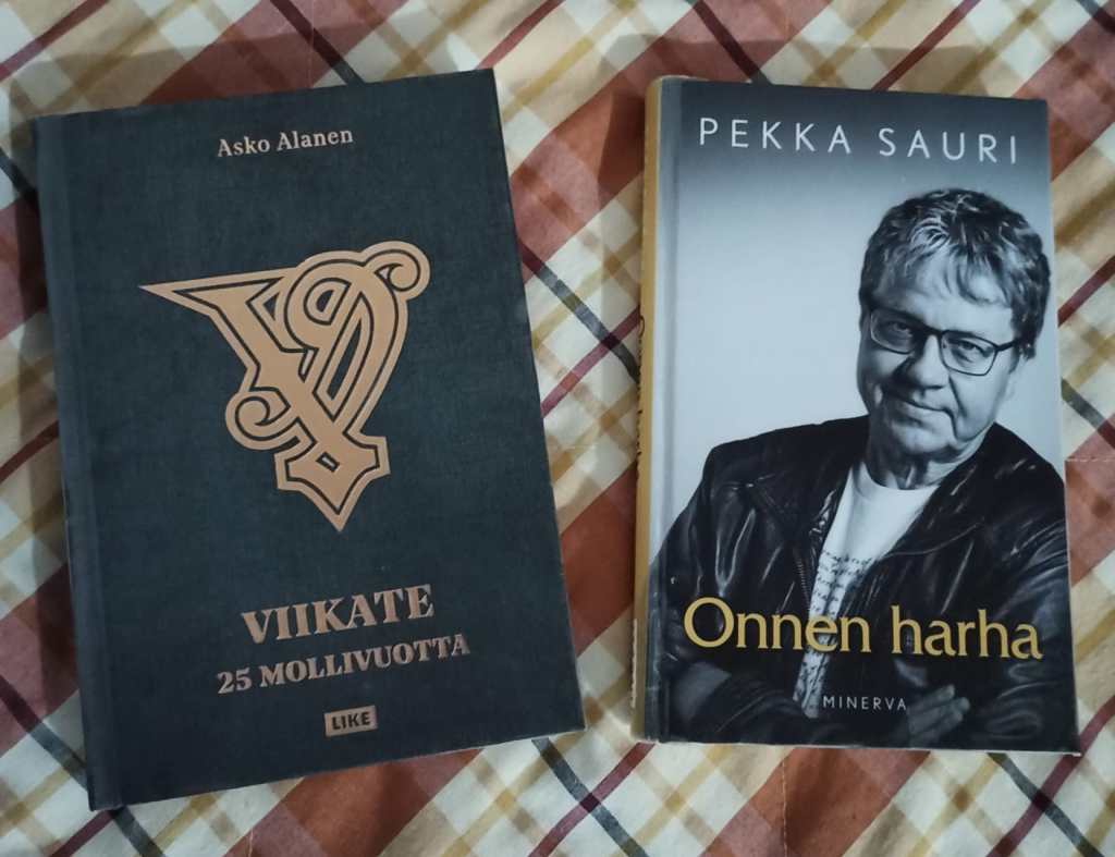 Hampuusi: Lukuhommiin olen kerennyt sen verran, että sieltä voi pari mainitakkin. Viime viikonloppuna sain päätökseen nyt syksyllä ilmestyneen Viikate – 25 Mollivuotta. Lähdetään liikenteeseen siitä, että minähän tutustuin Viikatteen musiikkiin ensimmäisen kerran yhtyeen vuoden 2002 Kaajärven rannat levyn myötä ja tykkäsin. Täysfani olin 2005 Unholan urut albumiin mennessä. Joten bändin mukana on roikuttu parikymmentä vuotta. Näimpä yhtyeen tarinan kertova kirja on niin sanottua pakkolukemisosastoa ja kyllähän kirja nivoo Viikatteen historian hyvin yhteen, ilman minkäänlaista rönsyilyä. Tarkoitan, että katse pysyy bändissä ja musiikissa, yksityiselämä jätetään hyvin vähälle. Asko Alasen tyyli on välillä toki tasapaksu ja sortuu paikoin luettelemaan keikkapaikkakuntia monotonisesti, mutta kirja herää aina eloon, kun yhtyeen jäsenet pääsevät itse ääneen. Varsinkin Kaarlen tarinointi ja sanan säilän käyttö saa sivut puhkeamaan kukkaan. Oli myös yllättävää, että kun kyseessä on kotimainen ”taiteilija/bändielämäkerta”, niin viinalla ei läträtä juuri ollenkaan. Eikä kyseessä ole suinkaan mikään absolutisti elämäkerta, vaan juomisesta ei vaan tehdä numeroa. Loppukaneettina sanottakoon, että aivan kelpo kirja Viikatteesta kiinnostuneille ja olihan Kaarle Viikate itse tyytyväinen tähän, mutta jäin kaipaamaan sukellusta hieman syvemmälle aiheeseen.