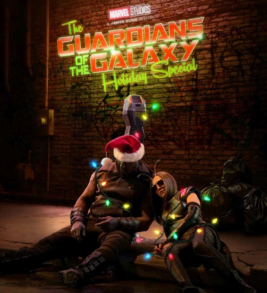 Mietiskelin pitkään, että jätänkö oman osuuteni näihin kahteen uudehkoon elokuvaan vai vieläkö kerron jotain. Keikalla en ole nyt käynyt, lukenut kyllä olen, mutten mitään sellaista, josta innostuisin kertomaan ja suosittelemaan. Olin jo pistämässä pensseleitä santaan tämän viikon osalta, kunnes keksin, että naputellaan The Guardians of the Galaxy Holiday special:sta, eli Disney+:n Marvel jouluspesiaalista. Reilu 40 minuutin rykäisy kertoo miten Drax ja Mantis päättävät yllättää Star-Lordin jouluna ja kaapata lahjaksi hänen lapsuuden sankarinsa Kevin Baconin. Siinä idea käärittynä lauseen kokoiseen myttyyn.