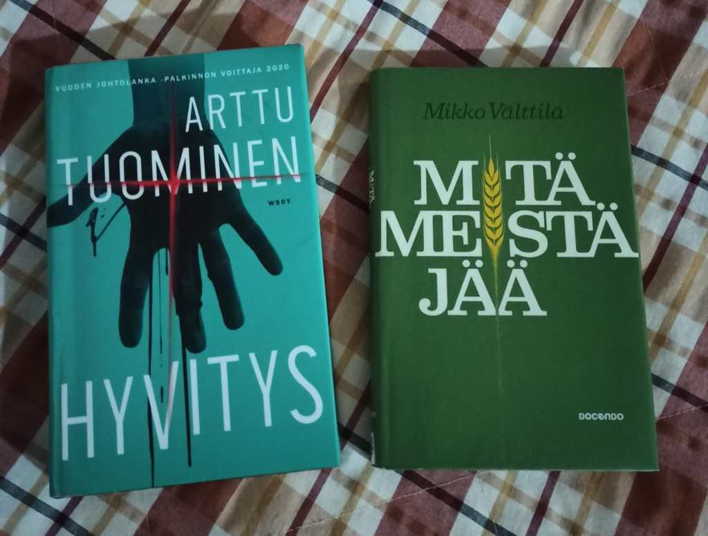 Toisena nostan esiin Mikko Välttilän Mitä meistä jää. Tarina alkaa kun Sami löytää parhaan ystävänsä, joka on tehnyt itsemurhan. Avioliittokin on rakoillut jo pitkään. Eli tarinan lähtötelineissä ollaan syvissä vesissä, mutta lohduttomuuteen ei jäädä vellomaan, sillä tämä tarina on matka pimeydestä valoon. Samalla tämä on tarina kotimaisen maatalouden murroksesta ja siitä miten raadollista ruokabisnes on ikuisen kilpailutuksen maailmassa. Kirjan päähenkilö Sami ja hänen kasvutarinansa on kirjoitettu hyvin, sen mukana on helppoa ja mukavaa myötäelää. Kyseessä on varsin monikerroksinen tarina, joka antaa ajattelemisen aihetta, että mitä jää jäljelle, jos multaa ja mehiläisiä ei enää ole? Kirjailija Mikko Välttilä on itse maanviljelijä ja yrittäjä ja kokemuksen rintaääni paistaakin kirjan sivuilta. Kirjan voi nähdä lämpimänä kasvutarinana, mutta myös eräänlaisena maaseudun hätähuutona maailmassa, jossa kaksi suurinta kauppaketjua käy hintasotaa. Näimpä tätä voikin suositella kaikille.