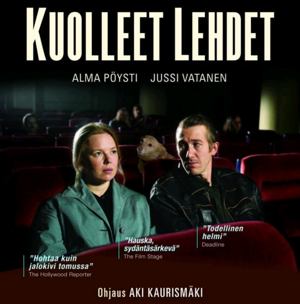 Hampuusi: Kävin maanantaina katsomassa Aki Kaurismäen tuoreen elokuvan Kuolleet lehdet. Kyseessä on Kaurismäen työläis-trilogian neljäs osa ja Varjoja paratiisissa elokuvan sisarteos. Elokuva kertoo yksinäisestä miehestä ja naisesta, jotka tapaavat ja ihastuvat, mutta miehen juopottelu tuo tummia pilviä rakkaustarinan ylle. Alma Pöysti ja Jussi Vatanen on ihastuttava elämän kohlima pääpari ja heidän kemiansa pelaa mainiosti yhteen. Sen päälle onkin hyvä rakentaa kaunis rakkaustarina, jossa hyväsydäminen nainen pelastaa rentun miehen.