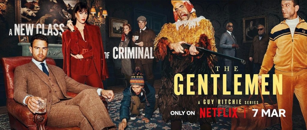 The Gentlemen on Netflixin 8-osainen rikossarja maaliskuun puolelta. Sarjassa Eddie perii yllättäen vastuuttoman isoveljensä ohitse, isänsä Herttua arvonimen, kartanon ja suurimman osan omaisuudesta. Pian hän saa kuulla, että hänen tiluksiensa alla on kannabis-laitos. Siis Guy Ritchien, The Gentlemen elokuvasta, tuttu laitos, joita on ympäri englantia aristokraattien mailla. Tuore herttua haluaa eroon huumebisneksestä, mutta se ei ole niin helppoa. Siinä lähtöasetelmat tähän Guy Ritchien luomaan sarjaan, joka siis pohjaa ja sijoittuu samaan maailmaan, sen samannimisen elokuvan kanssa tai ainakin jonkinlaisesta sisar-suhteesta elokuvan kanssa voi puhua.