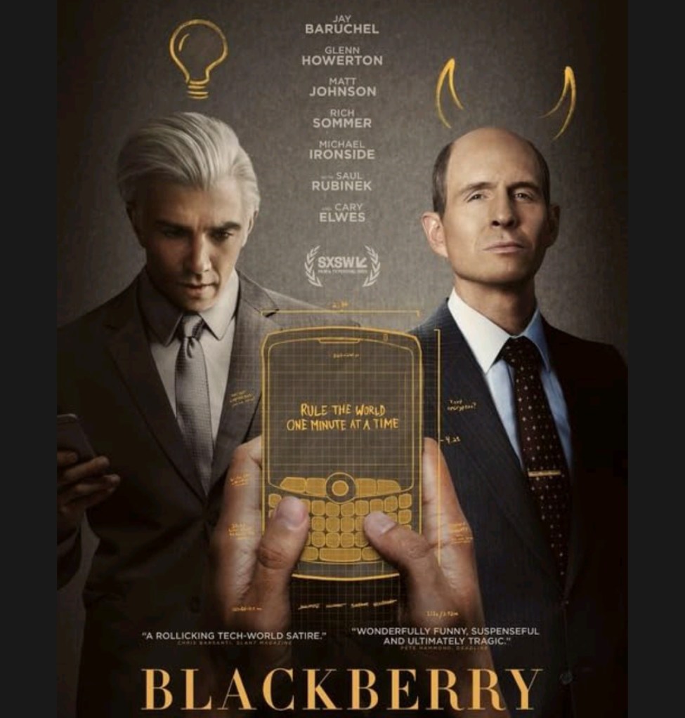 Blackberry on Matt Johnsonin ohjaama ja osittain kirjoittama draamakomedia, joka sai meillä ensi-iltansa viime joulukuussa ja lisättiin viikko sitten Viaplayn valikoimiin. Elokuva kertoo tosi tapahtumien inspiroimana maailman ensimmäisen älypuhelimen, Blackberryn, nousun ja tuhon. Siinä sapluuna lyhyesti. Elokuva pohjaa Losing the Signal: The Untold story behind the extraordinary rise and spectacular fall of BlackBerry. Tarina on siis periaatteessa totta, mutta kun se kerrotaan pilke silmäkulmassa ja muutenkin komediaa hyödyntäen, niin tapahtumat saavat vähintään erikoisen sävyn.